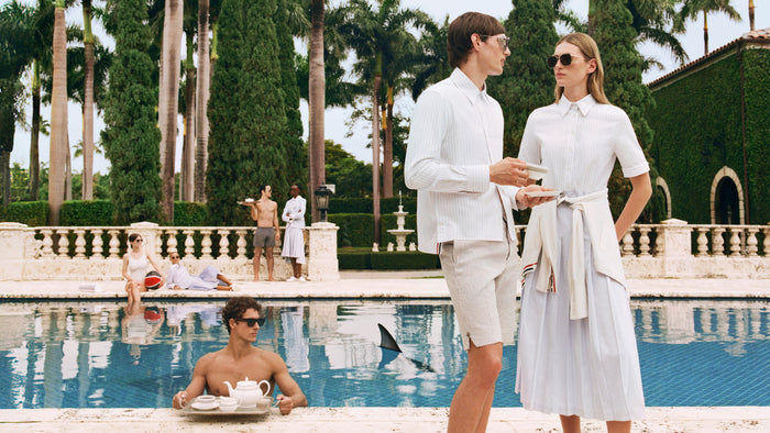 the discerning guest knows it’s all in the details. corset lacing on a wingtip pump, earl grey with a spoonful of sugar, pinstripe poplin shirt collars pressed just so… far from frazzled, summer friends stay cool by the water together...