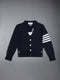 This luxurious cardigan exudes Thom Browne's mastery of innovative design and tailored excellence. Featuring 4-Bar stripe detailing, an emblem synonymous with the brand. Heralded as the most famous dog muse in fashion, Thom Browne very own dachshund Hector served as the inspiration behind this quintessential piece.
