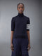 Relaxed short sleeve turtleneck in fine Merino wool with 4-bar stripe detail at left sleeve in white.