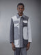 Relaxed field jacket in Fun-Mix grey Shetland wool with frayed edge detailing throughout. Zip front closure with button placket, shirt collar, 4 top-applied button fastening flap pockets. Button-fastening back side seam pockets. Striped lining with interior pocket and name tag. Signature striped grosgrain loop tab at back of neck.