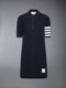 This short-sleeve dress is knit in textured cotton piqué and marked by engineered 4-bar striping. A ribbed polo collar and grosgrain-trimmed vents underscore the athletic reference, refined through Thom Browne’s tailored lens. Pair with the Hector Baguette bag to add playful contrast.