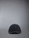 Baseball cap in grey wool felt. Contoured covered seams. Adjustable striped grosgrain backstrap with brass buckle.