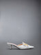 Ornamented with lustrous pearls, this elegant evening shoe is perfect for springtime celebrations of any kind. Delicately woven crab detailing is a call to coastal getaways and aquatic adventures.