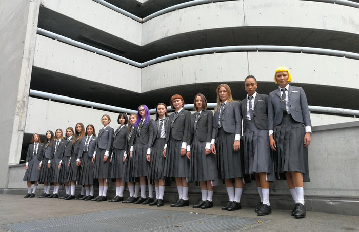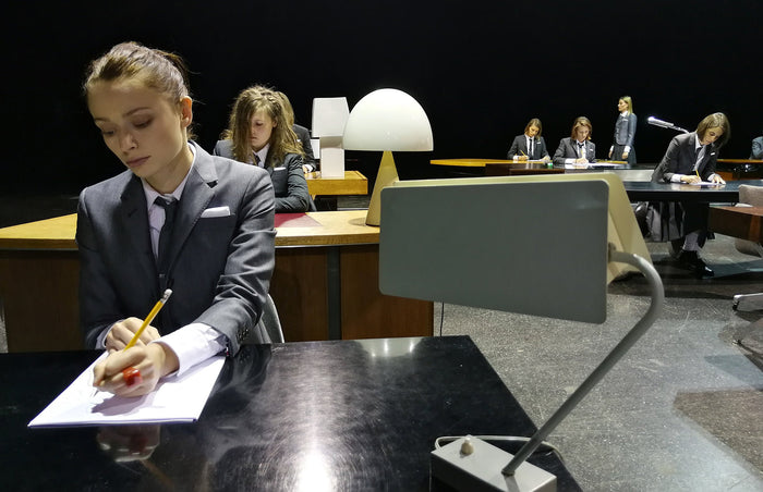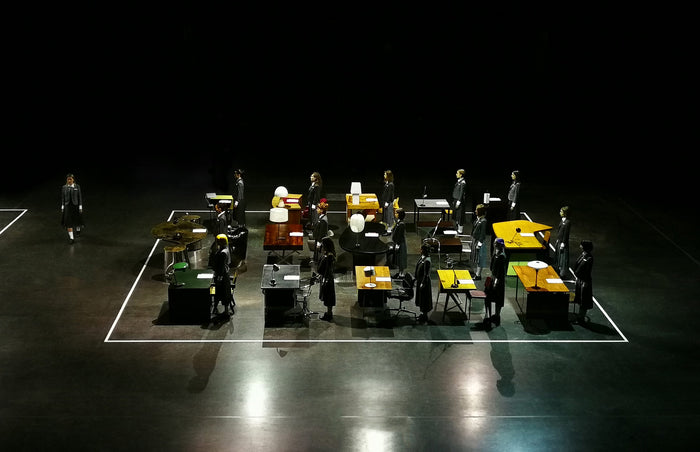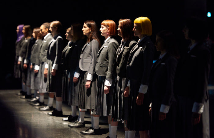 As the 2017 Curator at Large for Design Miami at Basel Switzerland, Thom Browne exhibited a vast grid of the most important desks from the last one hundred years, including statement pieces from masters such as Jean Prouvé and Ron Arad, alongside the set installation from his Fall 2014 Men’s Runway Show. The exhibition was animated by a choreographed performance conceived specifically for Design at Large focusing on young design students and their creative interactions with the installation.