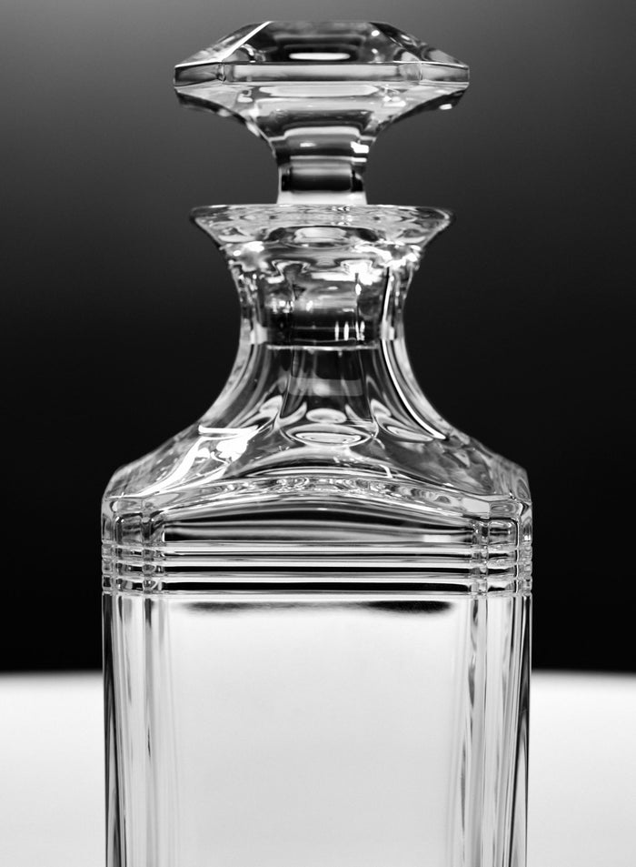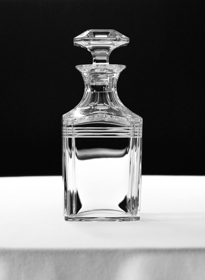 curated to compliment the world of thom browne, the collection services quality entertaining. a set of whiskey glasses and carafe service, champagne coupes, and a pair of yacht glasses combine the subtlety of baccarat crystal with recognizable iconography of thom’s design. with the brand’s four-bar motif, each piece in the collection is engraved to represent the elegance of baccarat and modernism of thom browne.