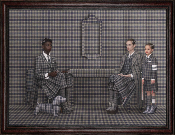 Thom Browne shares a portfolio of images featuring his proprietary grey and navy tartan. The signature tartan design first appeared in his Fall 2006 menswear collection.