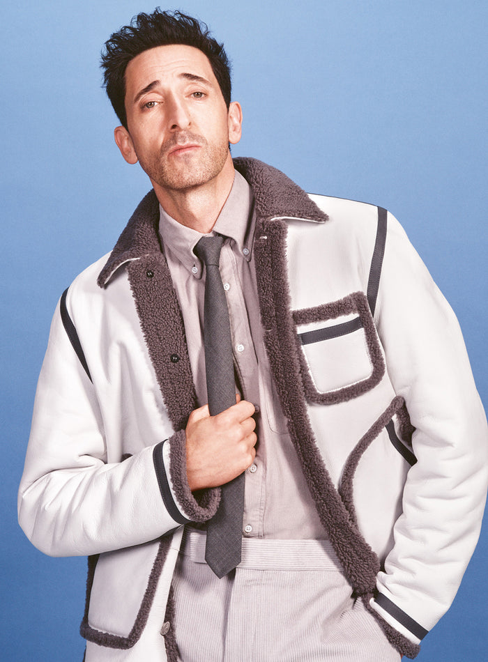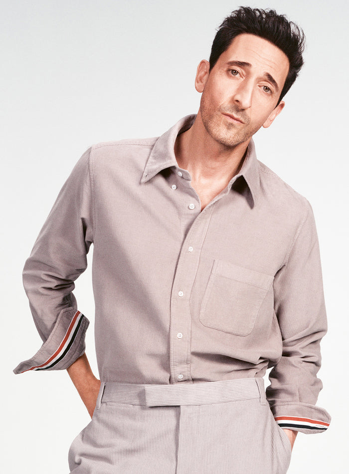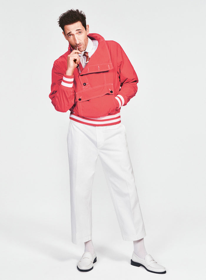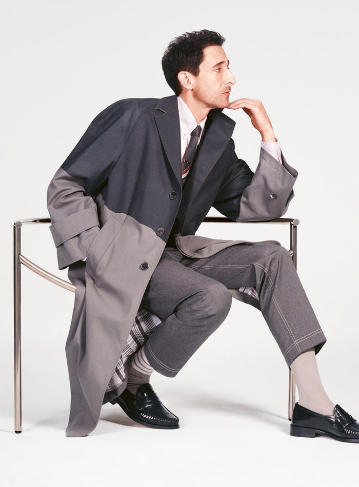 adrien brody wears thom browne spring 2025 on the cover of fantastic man. a love letter to prep, spring 2025 calls on thom's varsity beginnings. the spirit of athleticism is woven with corduroy, fun-mix, and stripes... past meets present, precise tailoring meets bold proportions… never one for convention…