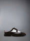 This backless longwing brogue reinterprets a traditional silhouette as a mule, crafted in box calf leather. Set on a lightweight rubber sole, it blends familiar detailing with a directional shift, offering comfort and a distinctly Thom Browne perspective on uniform classics. Pair with both tailored and casual looks to highlight its balance of tradition and ease.