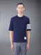 Short sleeve tee in navy cotton jersey with emblazoned '2003' and logo at back, along with engineered 4-bar stripe details in white on left sleeve. Crew neckline and a name tag applique above hem. Side vents with signature striped grosgrain trim. Signature striped grosgrain loop tab at back of neck.