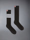 Mid calf socks in ribbed lightweight cotton with 4-bar stripe detail at one cuff in white.
