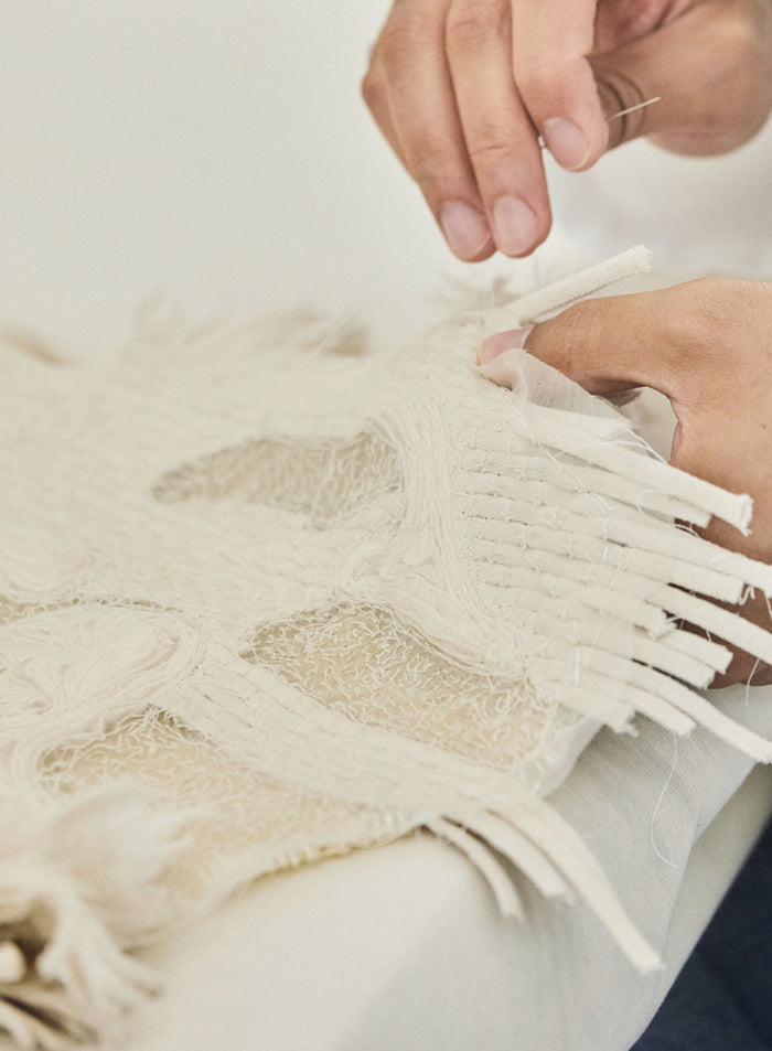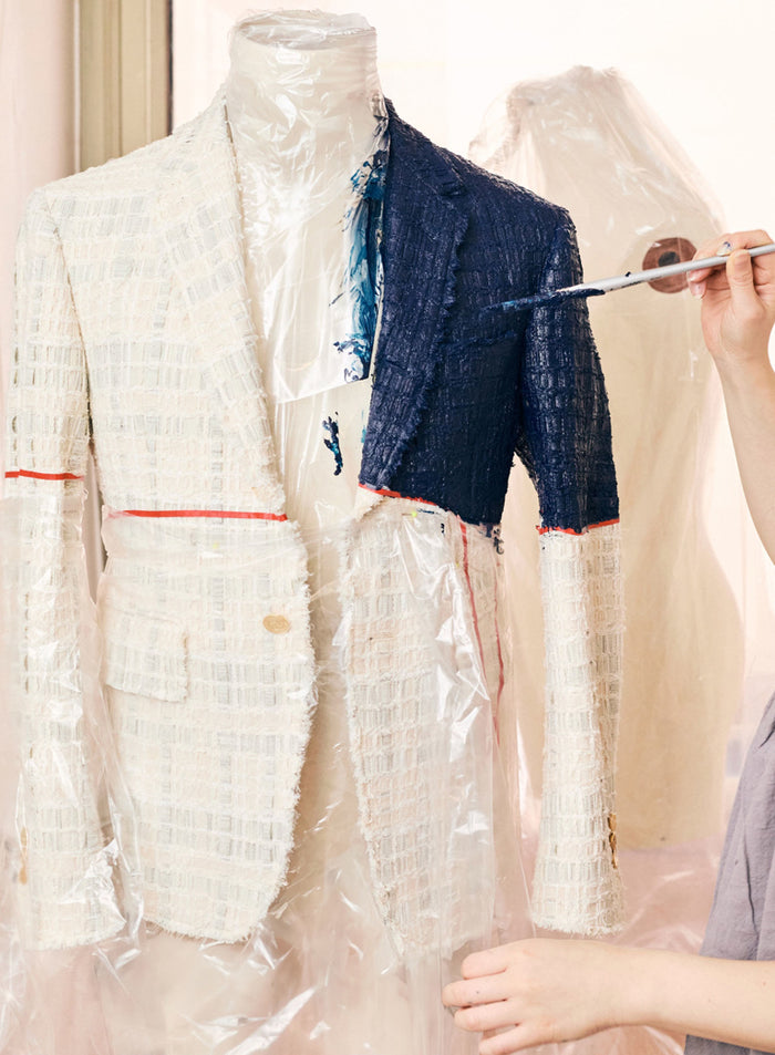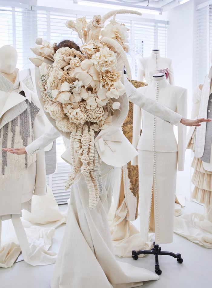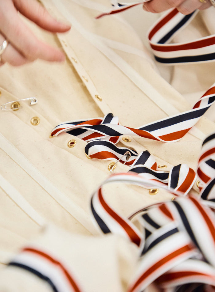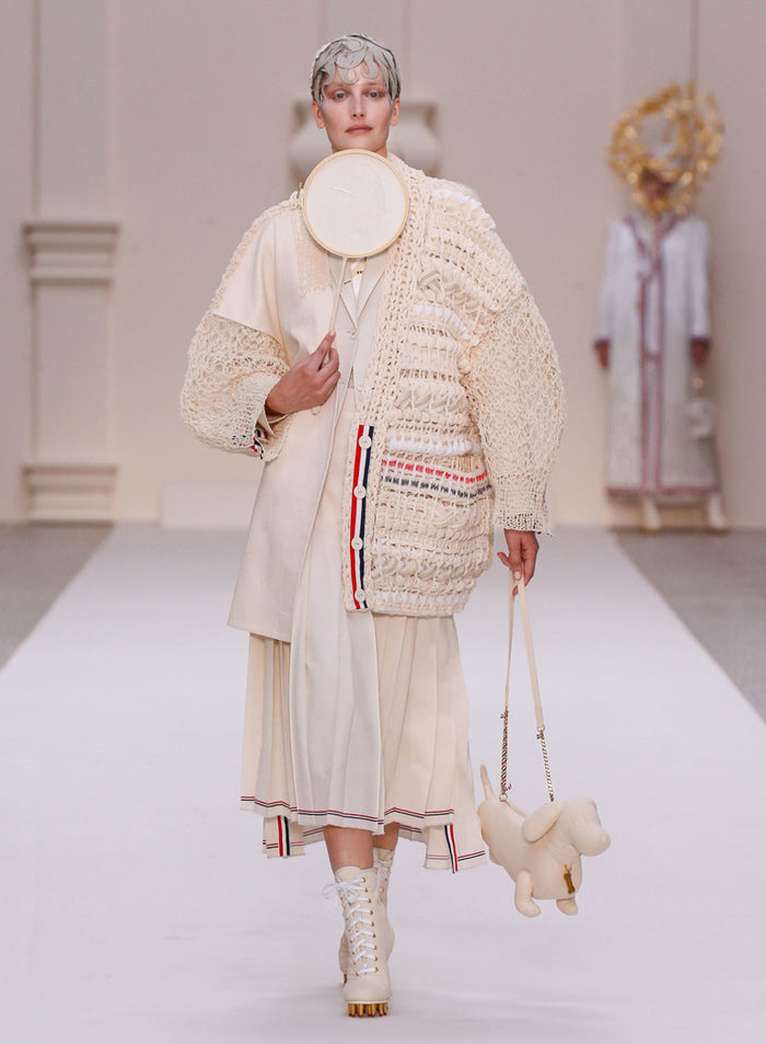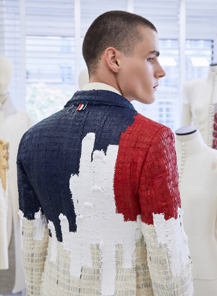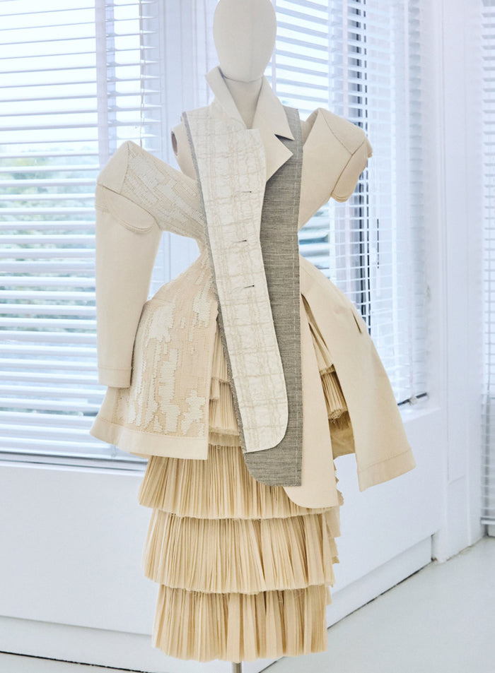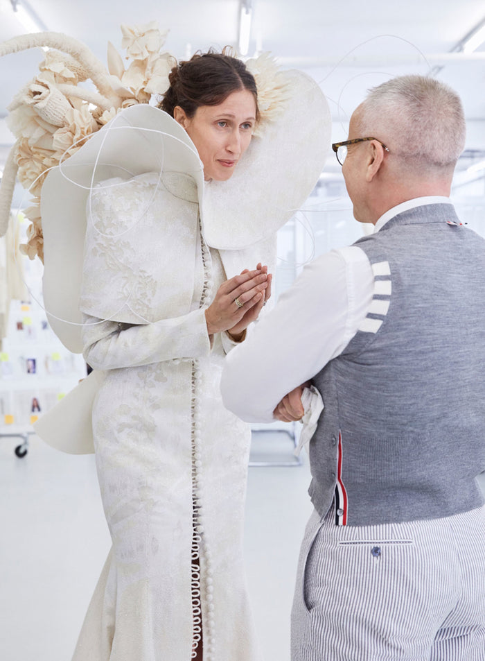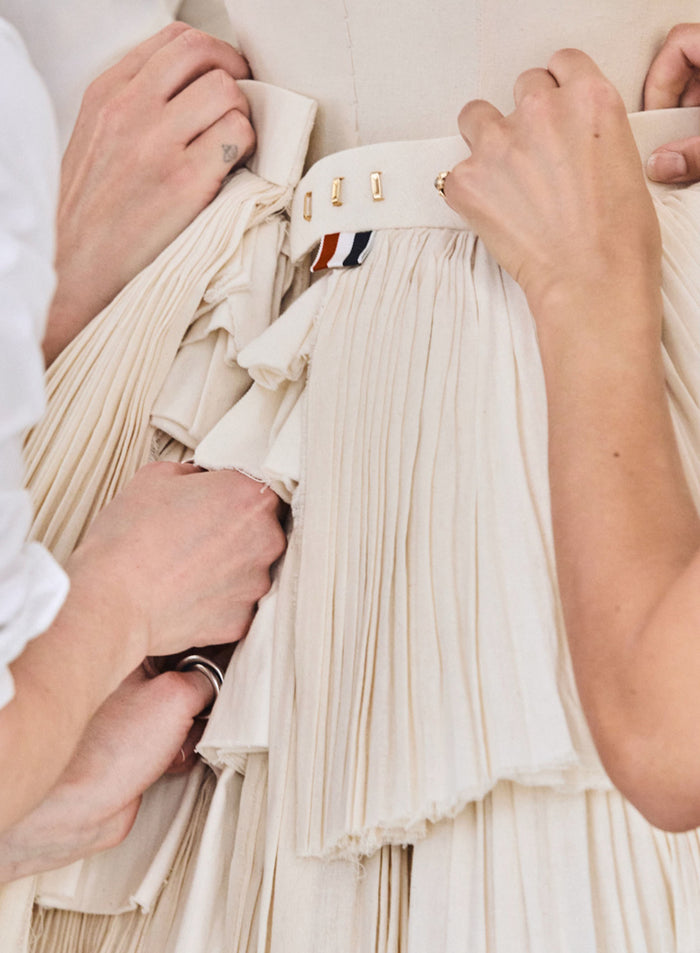 the thom browne atelier reimagines the silhouette in natural, untreated muslin with extraordinary detail. intricate handwork reveals the beauty in the process—meticulous, rigorous, meditative.Â