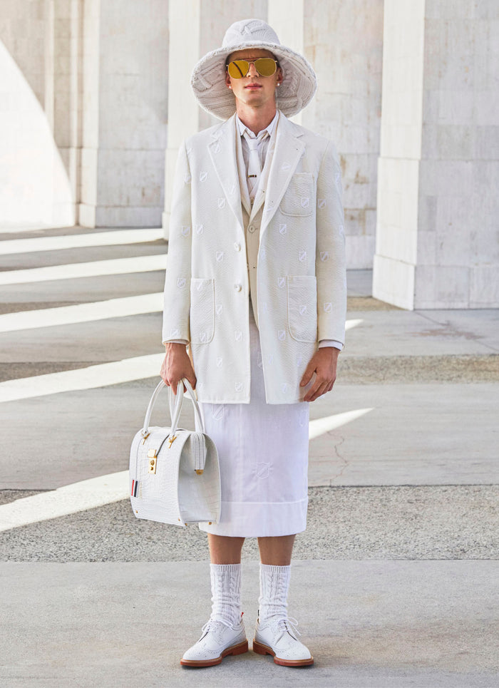 like a swimmer’s towel around the neck. thom browne’s drawings hand