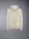 This zip-up hoodie features one of Thom Browne’s most recognizable emblems—engineered 4-bar detailing, inspired by midcentury collegiate and athletic uniforms. The four stripes stand for discipline, achievement, and tenacity, core values woven into the brand’s visual identity. Coordinate with the Loopback Jersey 4-Bar Shorts.