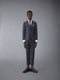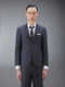 Classic suit and tie in charcoal super 120's wool twill. Single-breasted sport coat with notched lapels, 2 flap pockets, single chest pocket. Double back vent. Signature striped grosgrain trim at buttoned cuffs. Trouser with adjustable backstrap, jetted hip pockets. Signature striped grosgrain loop tab at back of neck and waist. Classic - Fit 1.