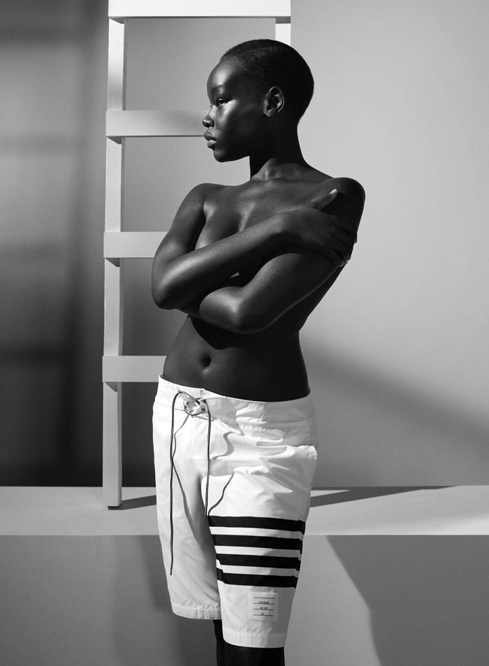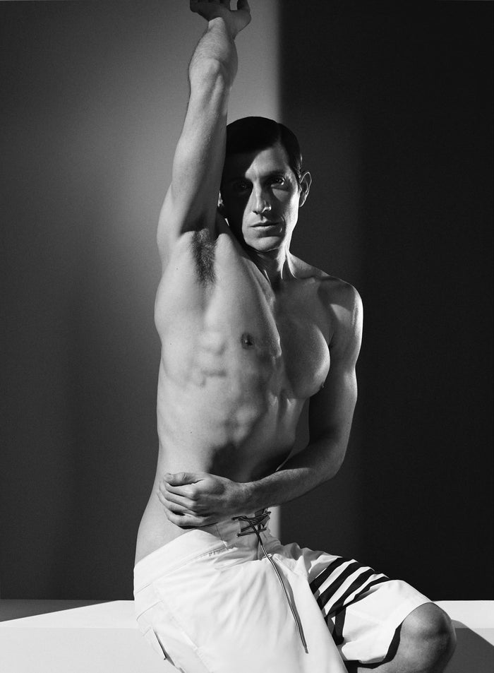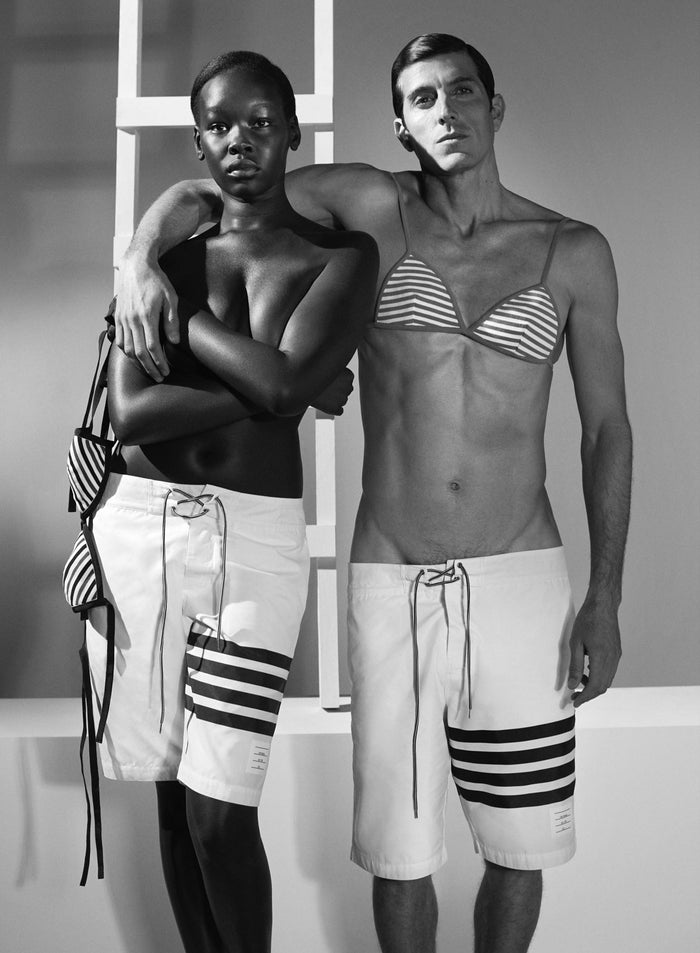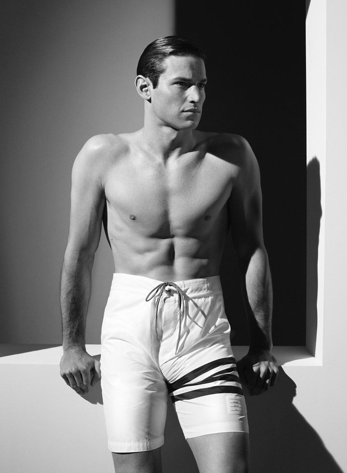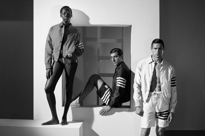 Models wear navy solid swim tech 4-bar blouson jacketswim tech 4-bar board shorts