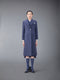 Wide lapel overcoat in solid blue Shetland wool. 2-button front closure, notched wide lapels, 2 flap front pockets, single chest pocket. Buttoned cuffs with signature striped grosgrain trim. Buttoned double vented back hem. Striped lining with interior pocket and name tag. Signature striped grosgrain loop tab at back of neck. Wide Lapel - Fit 4.