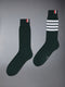 Mid-calf lightweight cotton socks with 4-bar stripe detail at one calf in white.