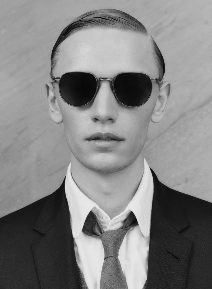 Model wears tb126 - black iron and grey sunglasses