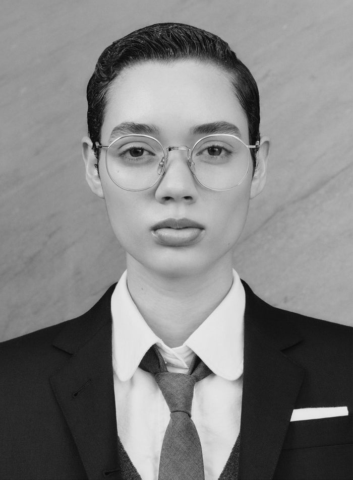Model wears tb125 - silver pantos glasses