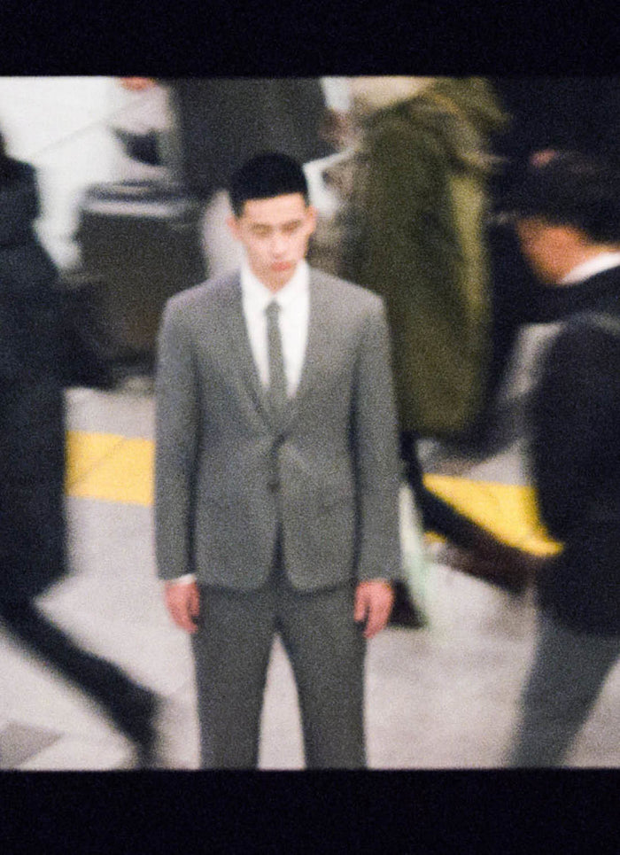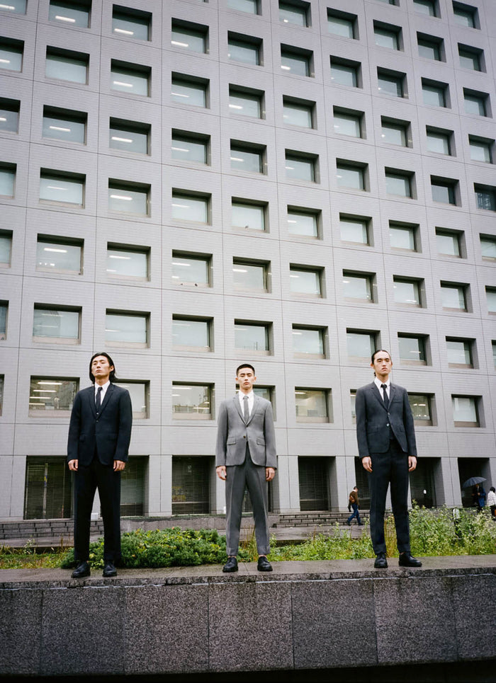 strong shoulders, sharp trousers. an echo of the angles around them. the commuters in their grey suits activate a rhythm in the crowds.