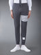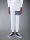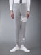 グレーのコットン ループバックのクラシックなスウェットパンツ。左腿にホワイトの 4 本ストライプのディテール。ドローストリング ウエストバンド、左袖口の上にネームタグ アップリケ、リブ編みの袖口。スリップ サイド ポケット、バック ウェルト ポケット 1 つ。バック ウエストにシグネチャー ストライプのグログラン ループ タブ。