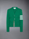 A signature Thom Browne emblem defines our Classic Cashmere 4-Bar V-neck Cardigan. Presented in 100% rich cashmere, this cardigan is a longstanding staple.