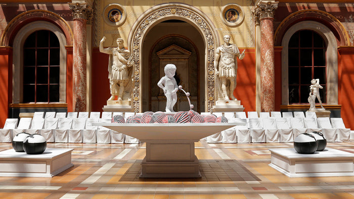 in the secret garden, classic ideas are blown up, following the curvaceous contours of the pannier. the XVII century clothing contraption undergoes a process of fantastic reinvention too.