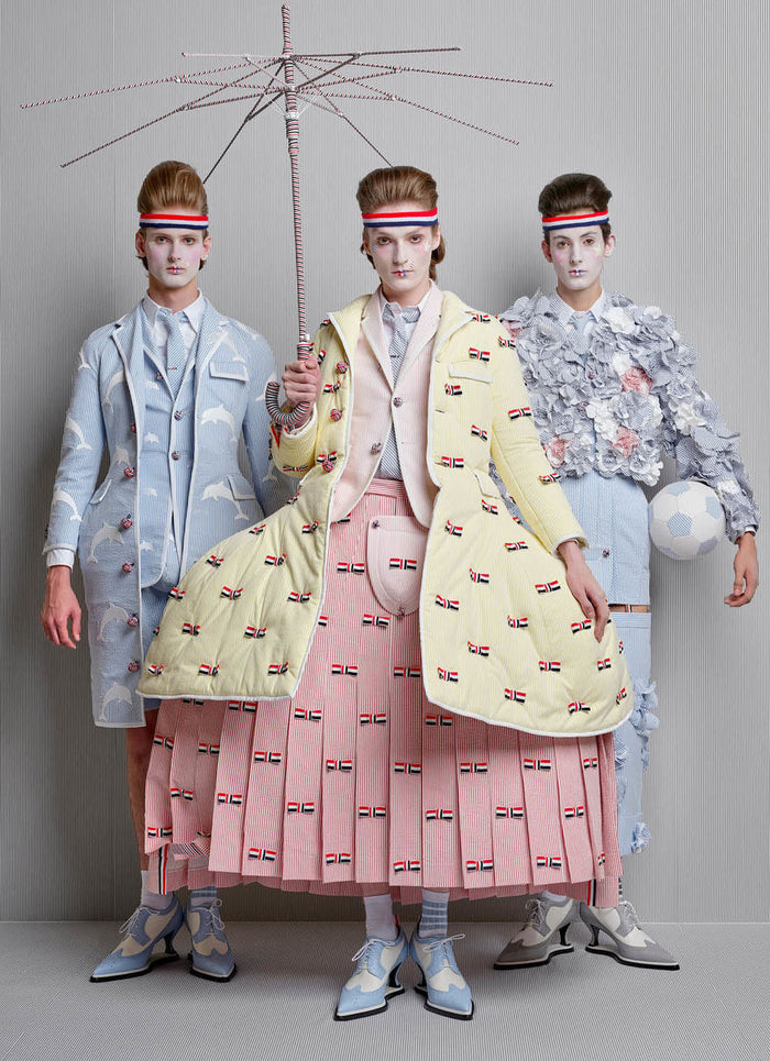 seersucker is celebrated throughout, in red, green, yellow, light blue, navy, pink, white.