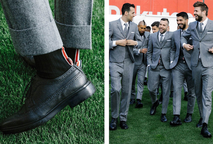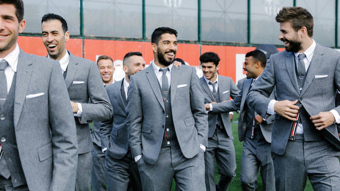 with thom browne as their official off-pitch outfitter, the catalonian champs look just as good traveling to their matches as they do playing in them.